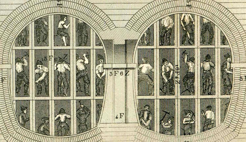 I can't help but include another image of a hard place to work, this one for the Thames Tunnel (from my post here: http://longstreet.typepad.com/thesciencebookstore/2012/08/beautiful-technical-illustration.html)