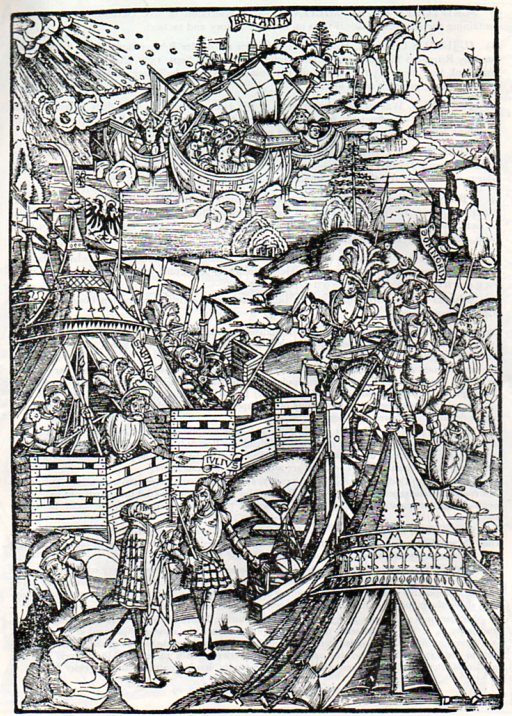 Titus Livius (59 BCE-17 ACE), better known to the English-speaking world as Livy, was a superior among superiors of Roman historians, writing on the history of his city and country. His work, Romische Historie…, published in Mainz by Johann Schoeffler 1450 years later in 1514, was one of the most beautifully illustrated books ever produced in that city. This is a considerable statement, as Mainz was the birthplace/hotbed of moveable type printing, being home to Johann Gutenberg and a number of other early presses.