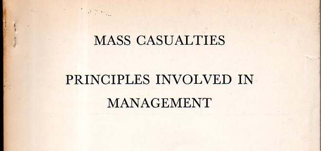 For example, the pamphlet Mass Casualties, Principles Involved in Management, published as an offprint from the journal Military Medicine (April, 1956), is filled with numbing categories of thought, and doubly-numbing sub-categories, all of which needed a thinking-out, because when you have to make plans for the destruction of all things, there must be some sort of planning for what happens when the fires go out.