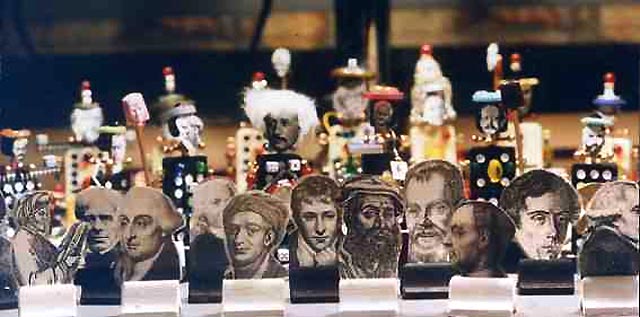 ac and junk, all with the same bases of dominoes. Each piece was an identifiable person from