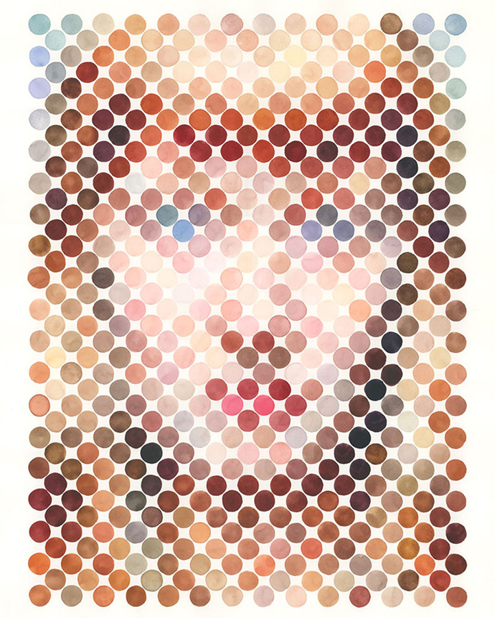 It was Georges Seurat who brought the whole world to the dot experience with his artistic method of Pointilism, in particular with his magnificent Un dimanche après-midi à l'Île de la Grande Jatte, an enormous work given its composition—dots. The dots replaced the brushstroke, and their placement in relation to their color was an absolutely brilliant innovation, establishing a perfect result for the viewer when examining the work as a whole. (It may well be that the French chemist an designer Michel Chevreul made this discovery a few decades earlier, noticing the effect and changes in color depending on placement and—in his case, with fabric—color in the dyes for his material.)
