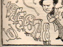 A metaphorical statement is not often seen in its literal sense, graphically displayed--especially in mathematics. But I did stumble across this example in the 15 June 1885 issue of Punch, or the London Charivari. It was used to illustrate an inglorious poem on an inglorious topic that we don't need to go into just now, but the tail-piece does exhibit the curious image of being buried by numbers.