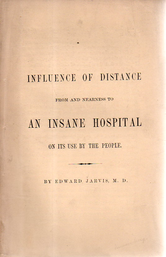 1. Edward Jarvis, M.D. "Influence of Distance from and Nearness to an Insane Hospital on its Use by the People." Published by Separately printed from the American Journal of Insanity, XXII, January 1866, pp 361-406. This publication paginated 1-46. (1866).