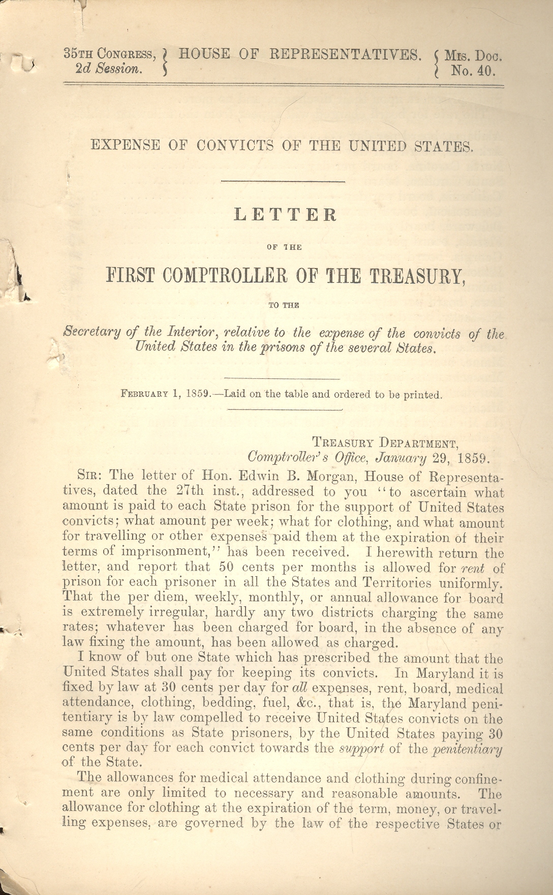 Comptroller of the Treasury…), 1 February 1859). The following comes in the first paragraph:
