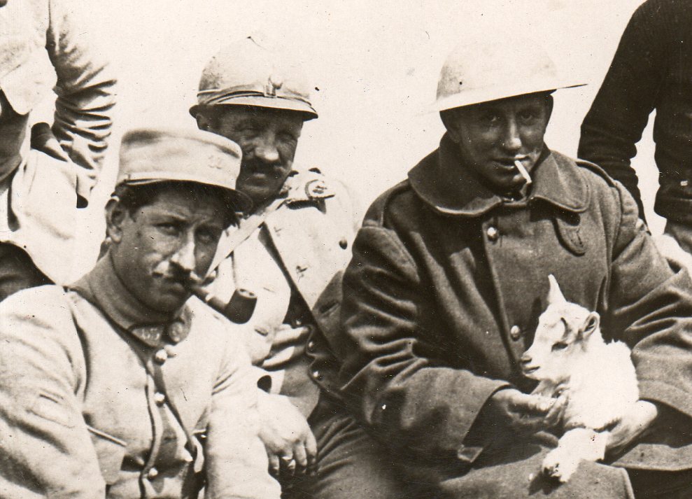 I wonder what the French officer sitting behind the table at the center background thought about at night, after his day was done. I wonder what it was that went through his head, his eyes fluttering, as he slipped into sleep? As the accompanying caption of this photo states, this was a census of dogs, a census of army dogs in the French army, taken at "the battle front" of Verdun, and dated 10 October 1918. Did he think of his duties expended throughout the day, and weeks and months? Counting dogs as a war effort may have been a hard thing to consume. Perhaps this officer had already seen his share of war, perhaps he had fought from 1914 and onwards, this position being relatively benign, a reward for years of impossibly difficult service in a bloody war. Or perh